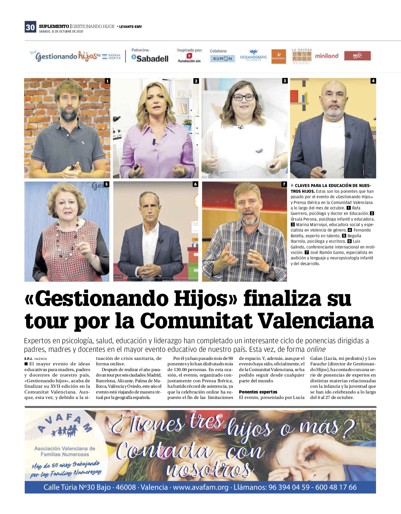 Avafam ha colaborado en «Gestionando Hijos» una gran fiesta de la educación dirigida a madres y padres con la participación de los mejores conferenciantes y pensadores del mundo de la educación o de otros ámbitos y que siempre tienen algo importante que aportar.