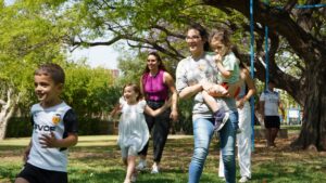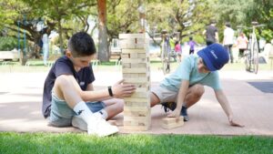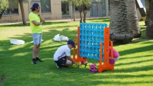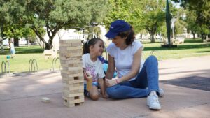 4 en raya, carreras de sacos, zancos, frisby, pájaros y cazadores, bolos infantiles, Jenga gigante y muchos juegos más en esta tercera edición del Día del Juego en Familia. De la mano de la Cátedra de Infancia y Adolescencia de la Universitat Politècnica de València, la Red de Universidades por la Infancia y la Adolescencia y de L´escola del Poli, pudimos disfrutar de una mañana muy entretenida saltando de un juego a otro.