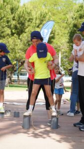 Comenzamos la mañana cargando pilas con un almuerzo para todos los asistentes a cargo de la organización y con una buena hidratación con agua y fruta. Pasamos a la explicación de los juegos, contamos con los estudiantes del curso de Monitor de Tiempo Libre de la Universitat Politècnica que ayudaron a coordinar los juegos con las familias. Para rematar la mañana, todos los asistentes se llevaron su medalla del Poli.
